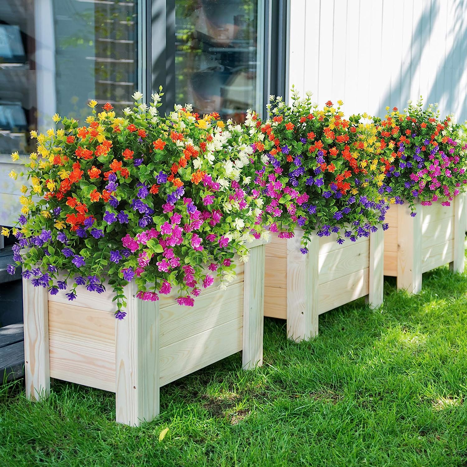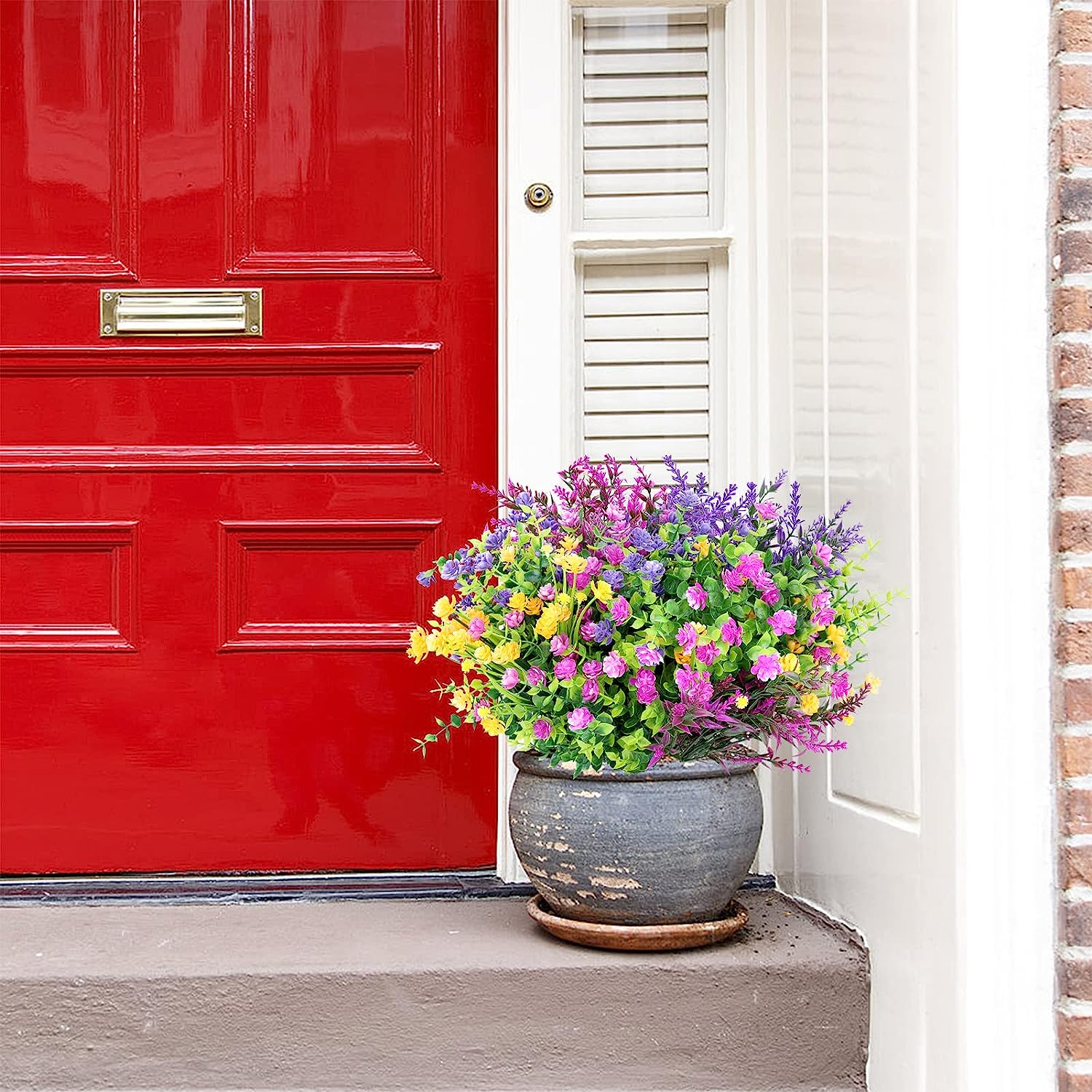 GrennMauler Artificial Flowers, 16pcs UV Resistant Fake Flowers Outdoor, Faux Plastic Flowers for Decoration Home Kitchen Garden Wedding Party Decor