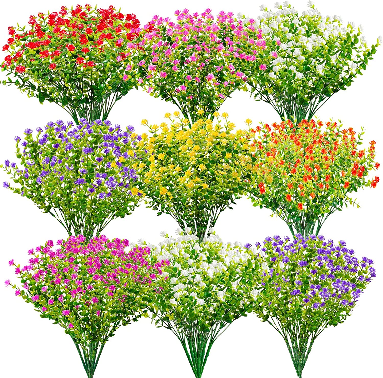 Ageomet 9pcs Artificial Flowers Outdoor UV Resistant Plastic Faux Flowers in Bulk Fake Flowers for Home Decor Outside Cemetery Indoor Vase Pots Hanging Planters Decoration